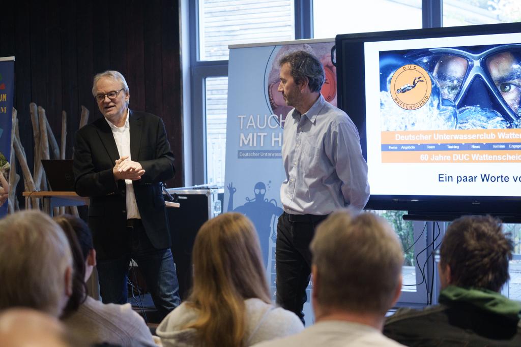Auch die Auswirkungen des Klimawandels auf unsere heimischen Gewässer kamen nicht zu kurz: Dr. Peter van Treeck zeigte anschaulich, wie Temperaturveränderungen Tiere, Pflanzen und Lebensräume beeinflussen – und was das langfristig für den Tauchsport bedeutet.