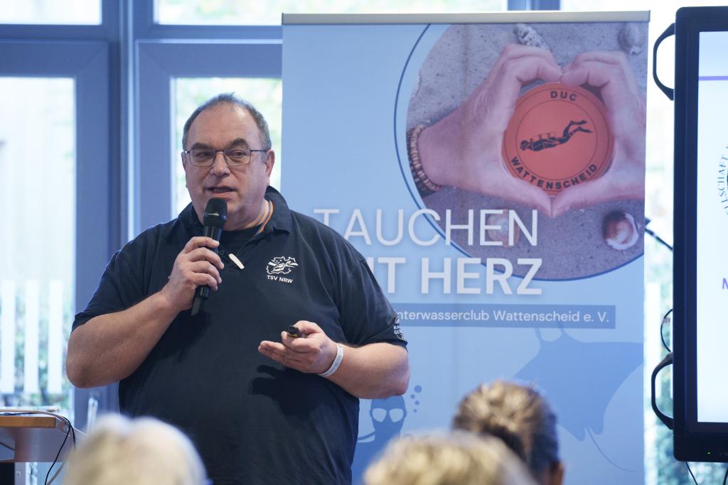 Mit dem Thema SIPE (Schwimmerlungenödem) führte Dr. Karl-Heinz Schmitz ein medizinisches Risiko vor Augen, das vielen aktiven Taucherinnen und Tauchern bislang kaum bekannt war. Seine verständliche Darstellung von Symptomen, Risikofaktoren und Prävention fand große Aufmerksamkeit.